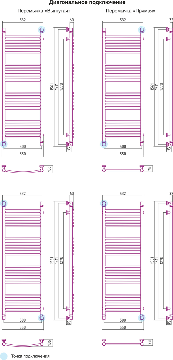Диагональное подключение, см