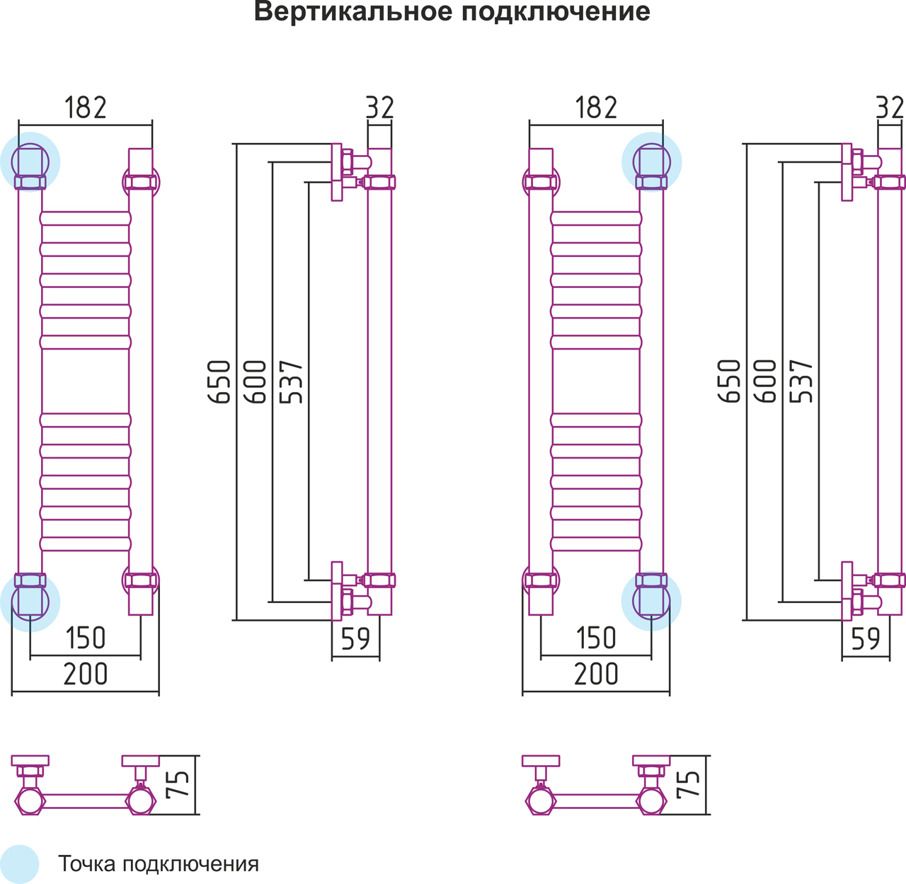 Вертикальное подключение, см