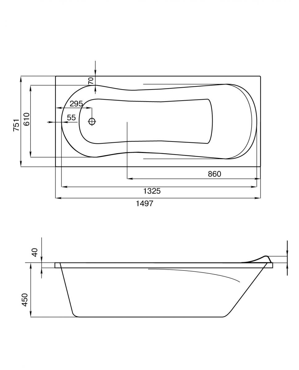Ванна акриловая Santek КАЛЕДОНИЯ 1.WH30.2.383 150x75 см.