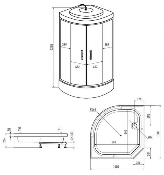 Душевая кабина Erlit ER351026-C3-RUS 100*100*226 см. четверть круга, низ. под.